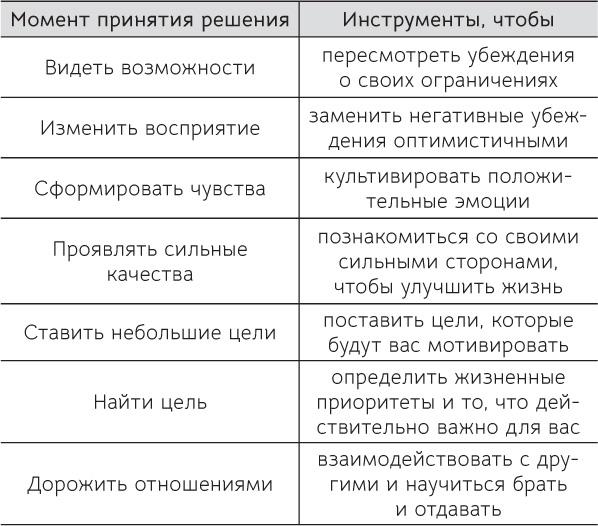 Техники позитивной психологии не только расширяют арсенал инструментов, помогающих справиться с плохим настроением, негативными мыслями и горем, но также формируют и поддерживают положительные черты характера. Умение наслаждаться, осознанность, вера, надежда, благополучие и оптимизм — лишь несколько из тех аспектов, которые вы будете развивать. Осваивая инструменты, одновременно облегчающие страдания и способствующие процветанию, вы учитесь справляться со сложными ситуациями, не попадать в них и жить более счастливой жизнью.