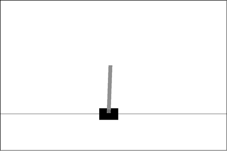 Рис. 1.1. CartPole-v0 — простая игровая среда. Цель — удержание в равновесии стержня на протяжении 200 шагов посредством управления перемещениями тележки вправо и влево