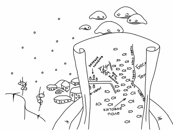 Деревня китобоев расположилась недалеко от Китового поля, почти на самом Краю света. Край света – это граница, за которую никто не заходит. Она называется так, потому что свет там действительно пропадает, и дальше пролегает Бесконечная Темнота. Может, у неё и есть конец, но Бесконечная Темнота такая тёмная, что его ещё никто не видел. Там вообще никто ничего никогда не видел, поэтому все решили, что там ничего и нет, и, значит, делать там тоже нечего. А главное, там нет китов.