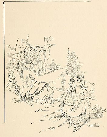 "One morning in April when it was quite chilly Bunty Bun saw several pretty plants on the way to school that she wanted me to dig up for her, root and all, for her garden. I said it would be better to get them on the way home that night, but Bunty said some one might come along and take them and that she wouldn't lose those nice plants for anything. So I got down on my knees and dug and dug with my hands in the cold, sticky dirt, until I got the roots all up for her, and my hands were quite numb and a sight to look at. Then we hurried on to school, for it was getting late.