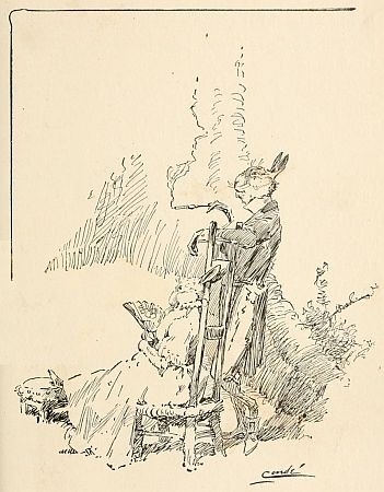 "There was some water in the basin, and I was just about to dip my hands in when I looked over toward Bunty Bun and saw her little ears all lopped down flat, for the other little girl rabbits were giggling at her for coming in with me and being late. The boy rabbits were giggling at me, too, which I did not mind so much. But I forgot all about the basin, for a minute, looking at Bunty Bun's ears, and when I started to wash my hands I kept looking at Bunty, and in that way made an awful mistake; for just when the water was feeling so good to my poor chilled hands, and I was waving them about in it, all the time looking at Bunty's droopy ears, somebody suddenly called out, 'Oh, teacher, Jacky Rabbit's washing his hands in the water-pail! Jacky Rabbit's washing his hands in the water-pail, teacher!'