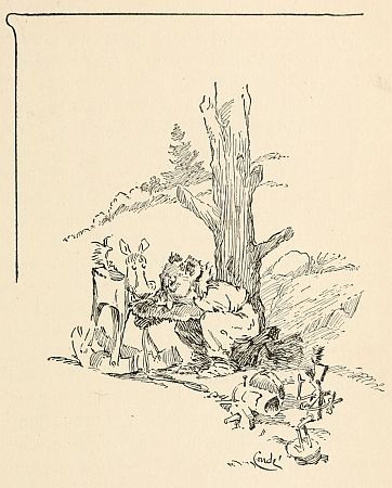 "Think of it, after all I had done for her! I saw at once that there would be no pleasure in carrying her books and helping her over the mud-puddles in the way I had planned. And just then Hickory Whack grabbed a stick and reached for me. But he didn't reach quite far enough, for I was always rather spry, and I was half-way to the door with one spring, and out of it and on the way home, the next. Of course he couldn't catch me, with his stiff leg, and he didn't try. When I got home I told my folks that I didn't feel well, and needed a change of scene. So they said I could visit some relatives in the Big Deep Woods—an old aunt and uncle, and I set out on the trip within less than five minutes, for I was tired of the Thickets. My aunt and uncle were so glad to see me that I stayed with them, and when they died they left me their property. So I've always stayed over this way, and live in it still. Sometimes I go over to the Heavy Thickets, and once I saw Bunty Bun. She is married, and shows her age. She used to be fat and pretty and silly. Now she is just fat and silly, though I don't suppose she can help those things. Still, I had a narrow escape, and I've never thought of doing garden work since then for anybody but myself and my good friends, like those of the Hollow Tree."