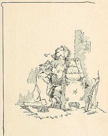 The Little Lady looks into the fire, too, and thinks. Then pretty soon she climbs into the Story Teller's lap and leans back, and looks into the fire and thinks some more.