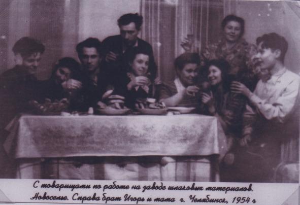 23 сентября 1953 года мне исполнилось 20 лет. Мои коллеги по работе на заводе сказали, что этот юбилей нужно отпраздновать. Мы договорились, что в этот день они придут ко мне в домик, и мы там отметим. Мой сосед Рябицев куда-то убыл, и я в домике был совершенно один. Что это были за коллеги? Это мой мастер Рива — еврейка по национальности, достаточно симпатичная, но полная, и начальник заводской лаборатории по имени Капитолина, звали мы ее все Капа. Обе незамужние. Риве было около 22, а Капитолине до 30. Я купил бутылку шампанского и какую-то закуску, а они принесли мне подарок — альбом для фотографий (этот альбом, уже изношенный, я выбросил только в начале 2000-х годов). Мы отметили слегка этим шампанским день моего рождения, и Капитолина сфотографировала меня с Ривой.