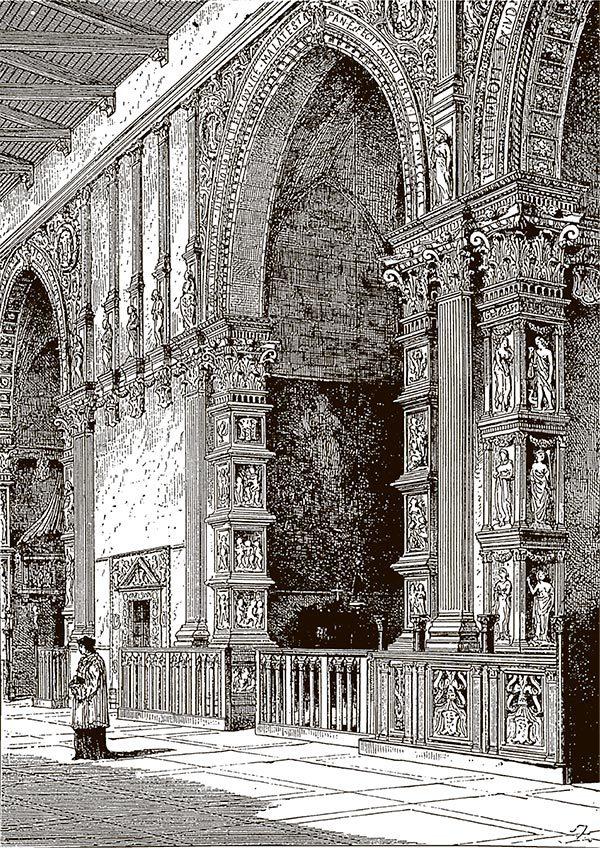 Жизнь Италии в эпоху Возрождения и жизнь наша так далеки друг от друга, представляют такой удивительный контраст со стороны внешней декоративности! Однообразно серенький тон жизни нашего большого города, наш скучный черный мужской костюм, отсутствие истинного вкуса в современных дамских нарядах, – представляют такую разницу с великолепием обстановки и костюма Италии!..