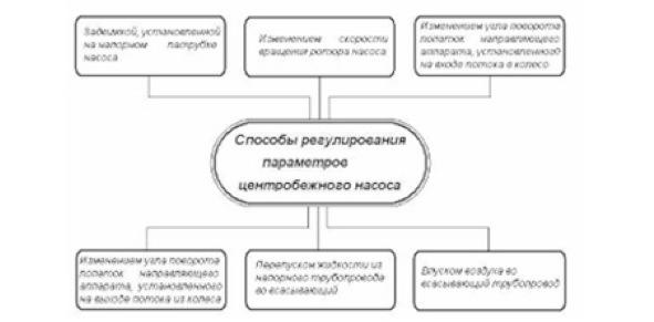 Рис. 4. Способы регулирования параметров центробежного насоса