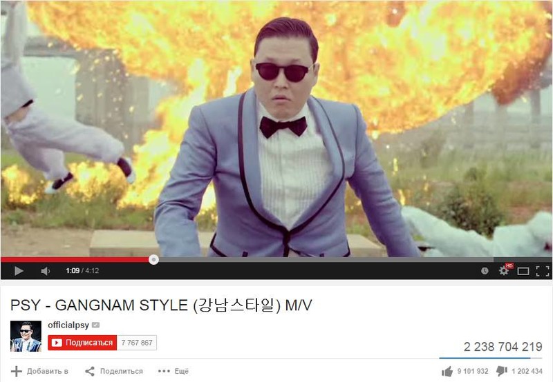 Кстати, на сегодняшний день официальный рекорд YouTube — это 2,2 миллиарда просмотров одного клипа корейского исполнителя. Именно благодаря YouTube он стал популярен не только у себя на родине, но и по всему миру.