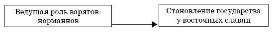 Приступая к выполнению задания на аргументацию точки зрения, необходимо в первую очередь выявить понятия (термины) тезиса-суждения (его составные части). Очень помогает, если суждение изобразить схематически. К примеру, возьмём один из тезисов для задания 24 ЕГЭ по истории: «Норманны (варяги) сыграли главную роль в становлении государства у восточных славян». Его можно изобразить следующим образом: