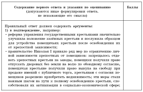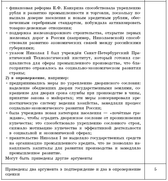Более того, фактическое подкрепление, несомненно, требуется и для обоснования каких-либо обобщённых суждений, чтобы эксперт мог убедиться – за этими суждениями стоит знание фактов. Многие учащиеся склонны к таким суждениям в своих ответах. Однако, например, суждение «Реакционный курс Александра I способствовал росту недовольства в обществе и формированию декабристского движения» является совершенно недостаточным без объяснения, в чём именно заключался этот реакционный курс, в каких конкретно действиях власти и почему эти действия вызвали недовольство части образованного общества. А если выпускник написал два положения, которые в критериях отнесены к разным аргументам, но объединил их в один, эксперт обязан рассматривать его как один аргумент, поэтому в данном примере следует каждое из действий власти рассмотреть отдельно, объяснив его связь с возникновением декабристского движения. Например: «Насаждение военных поселений с их муштрой рассматривалось как насилие и противоречило идеям о правах и свободах человека, что повлияло на будущих декабристов, воспитанных на этих идеях».