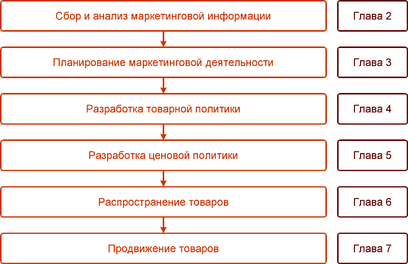 Для управления уровнем спроса на свои товары продавцу необходимо организовать процесс управления маркетинговой деятельностью, который включает сбор и анализ маркетинговой информации, планирование маркетинговой деятельности, разработку товарной политики, разработку ценовой политики, распространение и продвижение товаров (рис. 1.4). Рассмотрению каждого из этих этапов посвящена отдельная глава книги.