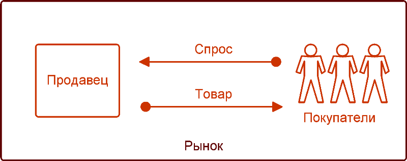 Взаимосвязь рассмотренных понятий: «продавец», «спрос», «покупатели», «рынок», «товар» – изображена на рис. 1.2.