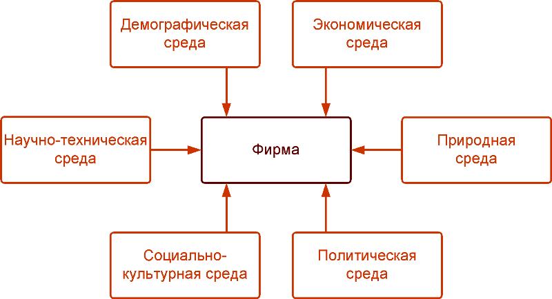 Любая фирма осуществляет деятельность не в вакууме, а в некоторой среде – взаимодействует с клиентами и поставщиками, подвергается влиянию конкурентов, государства и общества.
