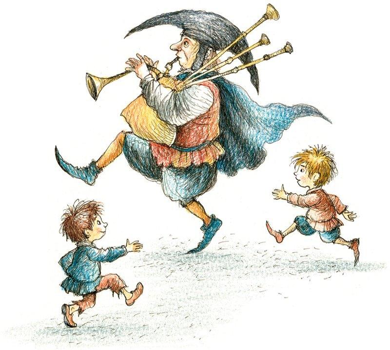 На второй день королева приказала разузнавать по соседству, какие ещё у людей имена бывают, и стала человечку называть самые необычайные и диковинные имена, говоря: «Может быть, тебя зовут Риннебист или Гаммельсваде, или Шнюрбейн?» – но он на всё это отвечал: «Нет, меня так не зовут».