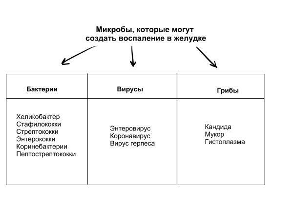 Не только хеликобактер, но и другие бактерии могут вызвать гастрит. Кроме того, воспаление в желудке способны спровоцировать и не бактерии, а другие микробы: грибки, вирусы и протеи.