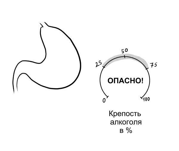 Химическое раздражение желудка происходит при потреблении только крепких алкогольных напитков – от 25 градусов и выше. Кроме того, употребление шампанского и пива приводит к образованию большого количества углекислого газа, которые растягивают стенки желудка. Особенно опасно пиво, ведь мужчины пьют его литрами.