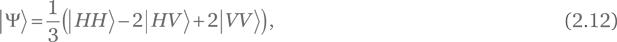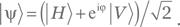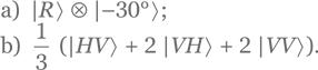 Упражнение 2.30. Для состояния |Ψ⟩ = 퓝 (|RV⟩ + |H+⟩):