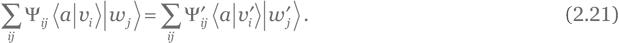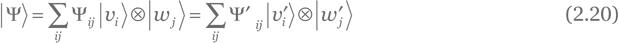 Упражнение 2.34. Покажите, что для любых двух ортонормальных базисов {|푣i⟩} ⊗ {|ωj⟩} и {|v'i⟩} ⊗ {|ω'j⟩} в 핍A ⊗ 핍B локального состояния |a⟩ ∈ 핍A и двусоставного состояния