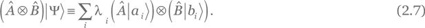 Упражнение 2.33. Предположим, что |Ψ⟩ — состояние в пространстве тензорных произведений, а |a⟩ и |b⟩ — состояния в пространствах Алисы и Боба соответственно. Покажите, что