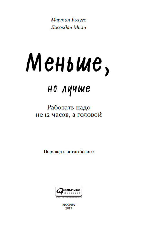 Меньше, но лучше: Работать надо не 12 часов, а головой / Мартин Бьяуго, Джордан Милн; Пер. с англ. — М.: Альпина Паблишер, 2013.