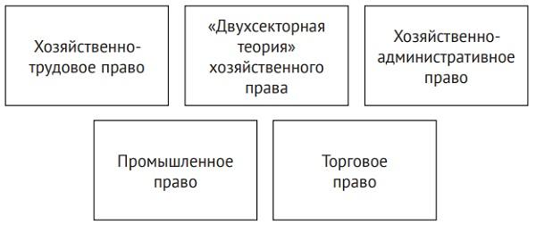 Представим краткий обзор основных концепций регулирования предпринимательских отношений и взглядов на предпринимательское право как отрасль права, нашедших отражение в научной и учебной литературе (схема 2.2).