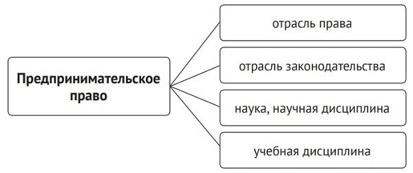 Понятие «предпринимательское право» может рассматриваться в нескольких значениях: как отрасль права, отрасль законодательства, научная и учебная дисциплина (схема 2.1).