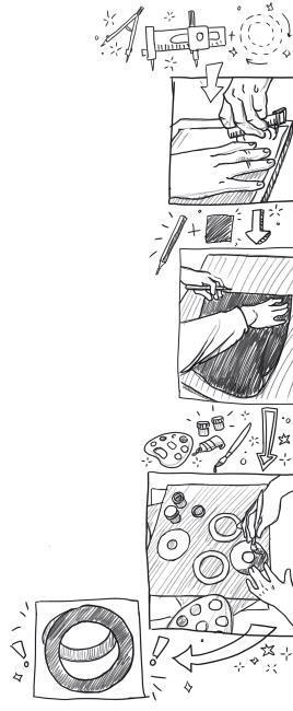Отец принялся за работу. Картон старым циркульным ножом резался тяжело: на одно кольцо ушло около получаса. Потом он взялся за краску. Мишка все это время возился с ватманами: отмерял, чертил, резал…