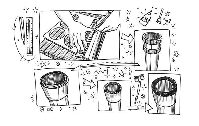 – Как раз чтобы нарастить тубус до нужных размеров. Сначала приклеим на него несколько полосок картона – увеличим диаметр, а дальше закрепим диафрагму и обернем все это ватманом. Черным, потом в несколько слоев белым. Если не экономить на клее, должно получиться неплохо.