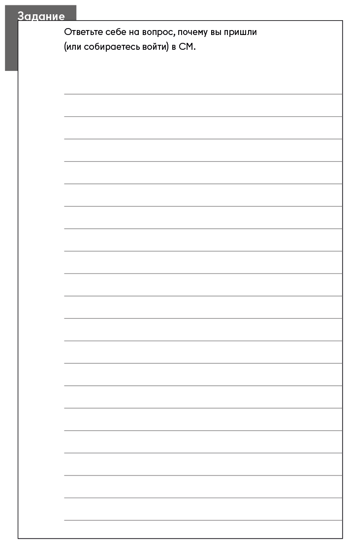 В конце каждой главы есть задания, которые помогут вам определиться с мечтой и начать действовать. СМ требует навыков, а навыки приобретаются только через действия.