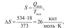 Пример 2. Рассчитать энтропию обратимого превращения 1 моль воды в пар при температуре кипения.