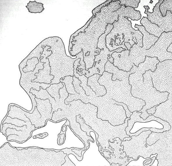 Очертания материка Европы в раннем плейстоцене. Всемирная история, т. I, Академия наук СССР, под ред. Е. М. Жукова, Госполитиздат, М., 1956, с. 23.