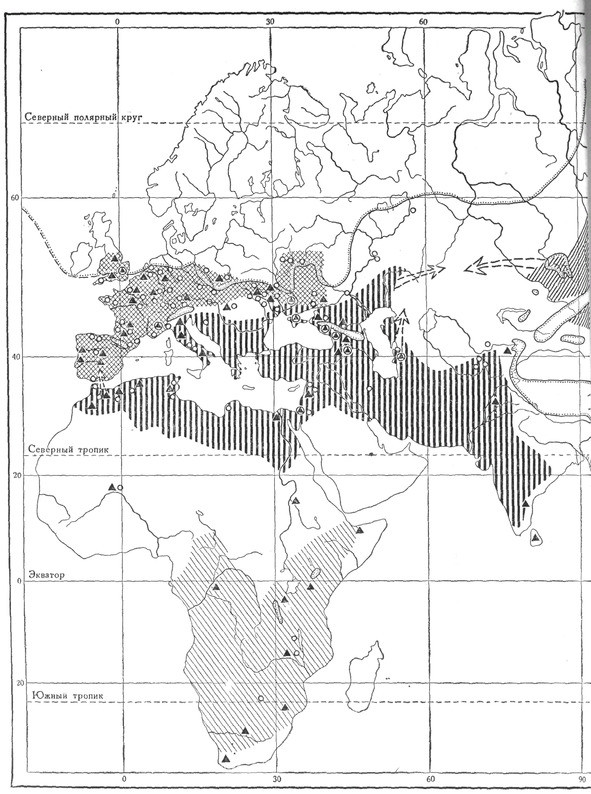 Очертания материка Европы в раннем плейстоцене. Всемирная история, т. I, Академия наук СССР, под ред. Е. М. Жукова, Госполитиздат, М., 1956, с. 44—45.