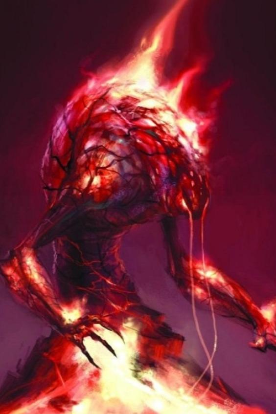 Хаос подступил к водной сфере и просунул в неё левую руку по локоть. Начал что-то искать и нащупывать. Вдруг резко сжал кулак. Рука покраснела и стала раскалённой. Вода в шаре закипала. Через мгновение существо разжало кулак и вытянуло руку из шара. Вода резко перестала кипеть.