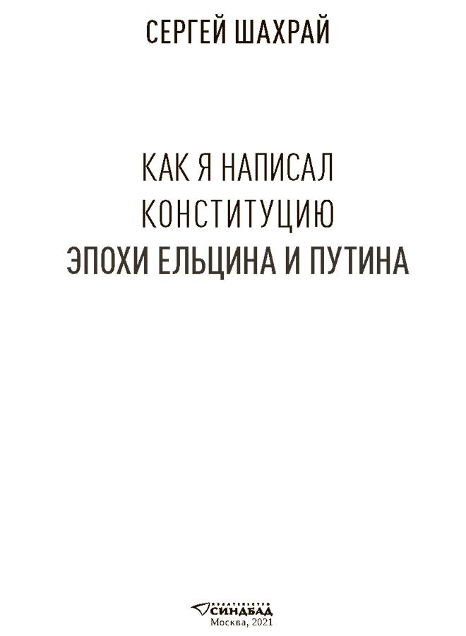Как я написал Конституцию эпохи Ельцина и Путина / Сергей Шахрай. — М.: Синдбад, 2021. : ил.