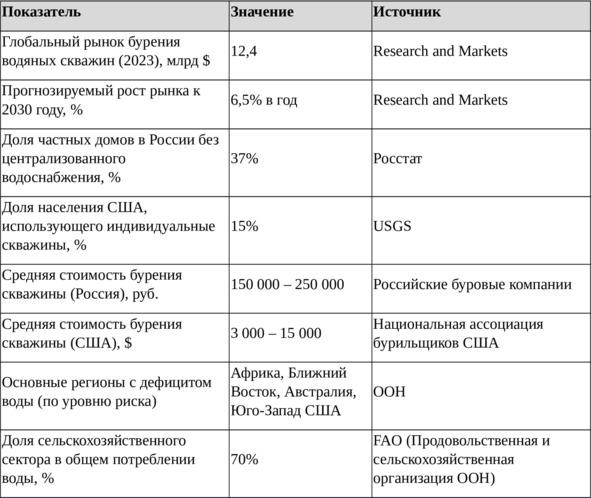 Бурение водяных скважин является одной из ключевых отраслей, обеспечивающих доступ к воде для частного и коммерческого использования. Согласно данным Всемирной организации здравоохранения (ВОЗ), более 2,2 миллиарда человек в мире испытывают трудности с доступом к чистой питьевой воде, а к 2050 году глобальный спрос на воду может увеличиться на 55%. В этом контексте автономные источники водоснабжения, такие как индивидуальные скважины, становятся не просто удобством, а насущной необходимостью.