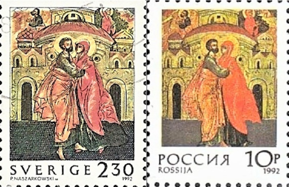 У 1992 годзе пошты Швецыі і Расіі ажыцьцявілі сумесны выпуск марак з рэпрадукцыямі ікон «Cустрэча Ганны і Ёакіма»