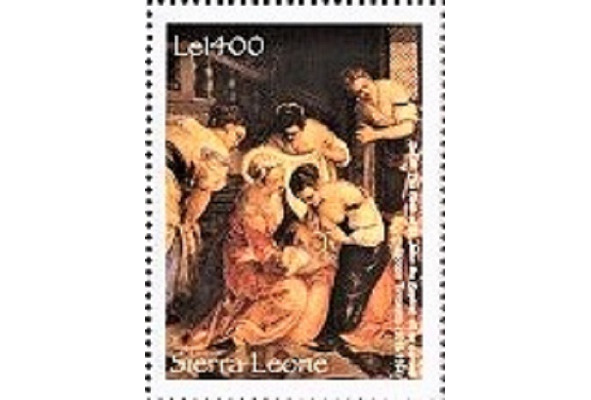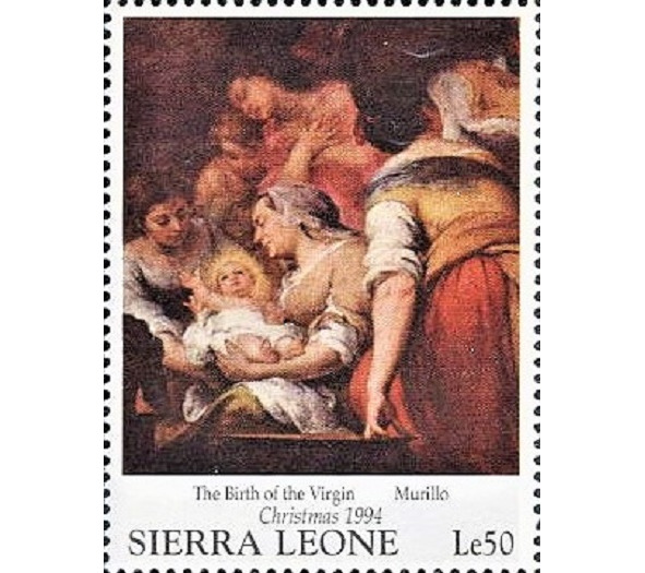 Частка карціны Барталоме Эстэбана Мурыльё «Нараджэньне Найсьвяцейшай Багародзіцы» (Люўр, Парыж) разьмешчана на марцы пошты Сьра Леонэ (1994 г.)