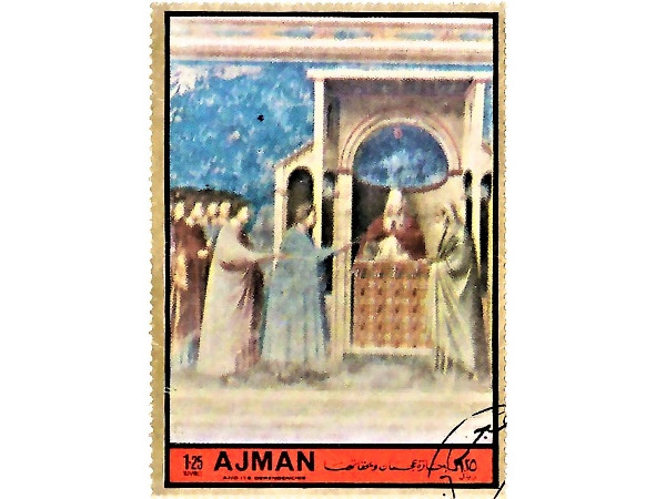 У 1972 годзе пошта Арабскага Эмірату Аджман выпусьціла сэрыю марак, на якіх адлюстраваны рэпрадукцыі фрэсак Джота ды Бандоне. На гэтай марцы маладыя людзі аддаюць свае галінкі першасьвятару