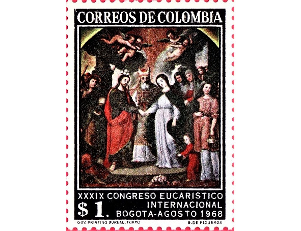 Пошта Калюмбіі ў 1968 г. разьмясьціла на марцы рэпрадукцыю карціны Балтазара дэ Фігуэроа «Заручыны Сьвятога Язэпа з Сьвятой Марыяй». Сьвяты Язэп трымае ў руцэ расцьвіўшую лілеяй галінку. Над усімі прысутнымі радасна лятаюць анёлкі