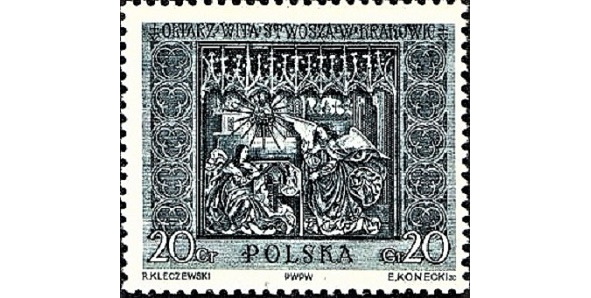 «Дабравесьце» на паштовай марцы Польшчы, надрукаванай у 1960 годзе. Дэталь гатыцкага алтара працы Віта Ствоша ў Марыяцкім касьцёле ў Кракаве.