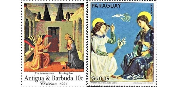 «Дабравесьце» на марках краін Анцігуа і Барбуда (1991 г.), (Фра Анджэліка) і Парагваю (1975 г.), (Андрэа дэла Робі)