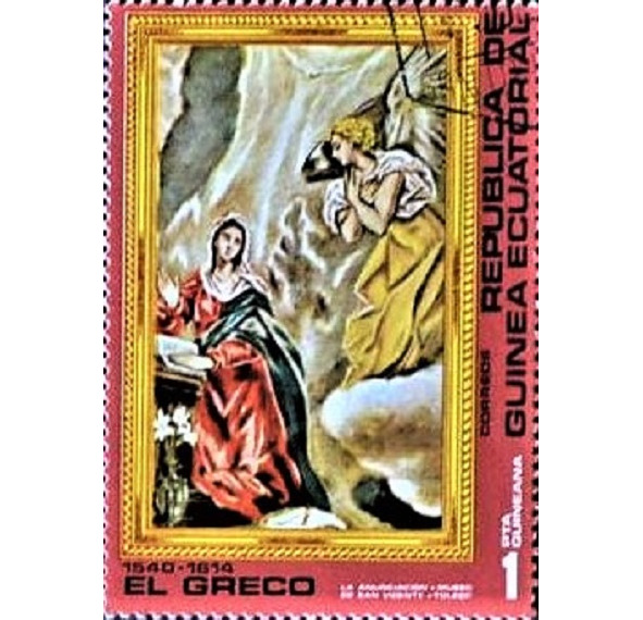 Рэпрадукцыя карціны Эль Грэка «Дабравесьце» на марцы пошты Гвінэі Экватарыяльнай, выдадзенай у 1972 г.