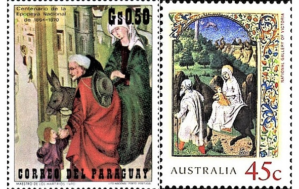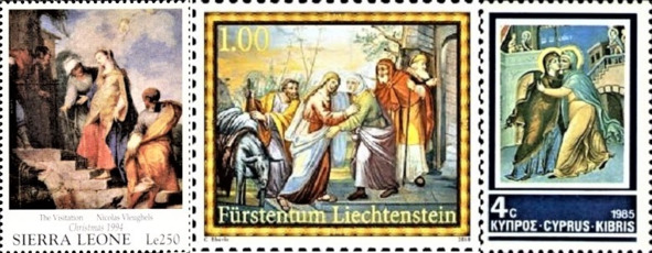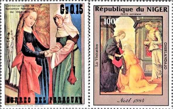 Сустрэча Марыі і Елісаветы на марцы Парагваю (1971 г.). Рэпрадукцыя карціны Барталамэўса Цайтблома (Bartholomaeus Zeitblom). І на марцы Нігера (1984 г.).рэпрадукцыя карціны Даменіка Гірландайё