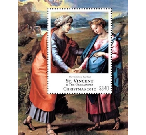 Выява карціны Рафаэля «Сустрэча Марыі і Елісаветы» на блёку краіны Сэнт-Вінцэнт і Грэнадзіны (2012 г.)