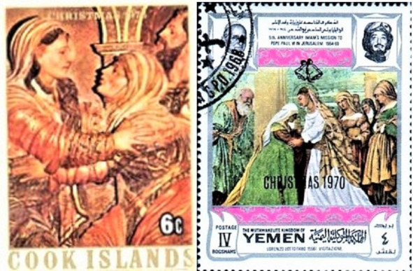 Сустрэча Марыі і Елісаветы на марцы пошты Астравы Кука (1976 год) і на марцы пошты Емэну (1969 г.).
