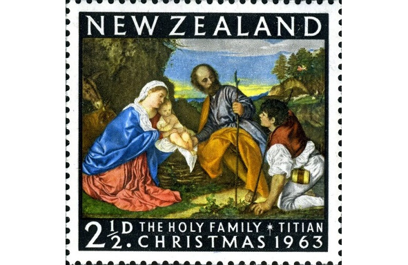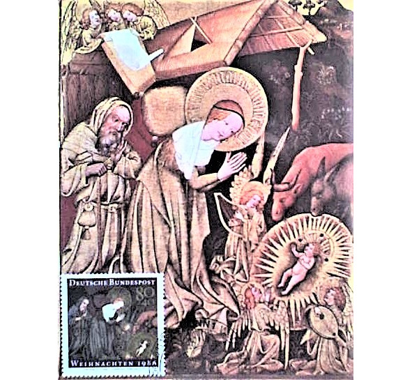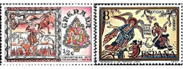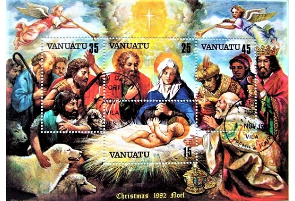 Блёк пошты Вануату (1982 г.), на якім мастак адначасова паказаў і анёлаў, якія абвясьцілі пастухам Цудоўную навіну, і першых наведвальнікаў Дзіцяткі — пастухоў, і зорку, якая вяла мудрацоў, і самых мудрацоў ля Сьвятой сям»і