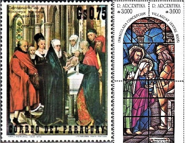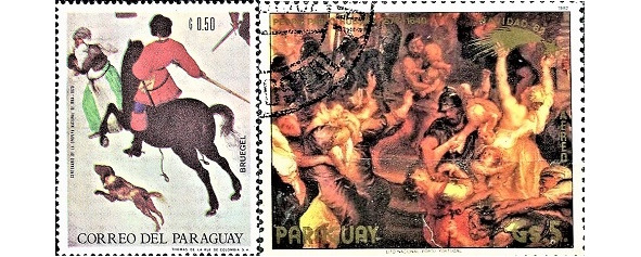Забіцьцё немаўлят — тэма марак пошты Парагваю (1968 г. дэталь карціны Пітэра Брэйгеля (Pieter Bruegel) і (1982 г. рэпрадукцыя карціны Рубенса)
