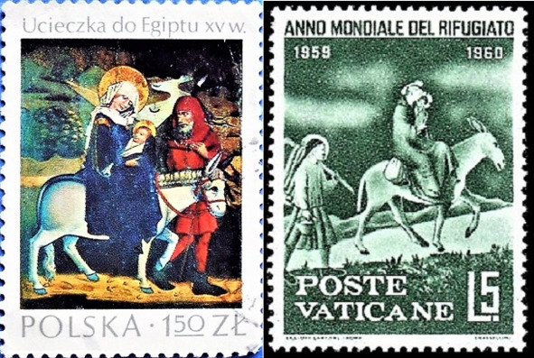 На марцы Польшчы (1974 г.) Алтар ананімнага кракаўскага мастака (Майстар Дамініканскага Трыпціху, каля 1460 г.) з касьцёла Дамініканцаў. Нацыянальны музэй. На марцы Ватыкану (1960 г.) — «Падарожжа Сьвятой сям’і» (Фра Анджэліка)