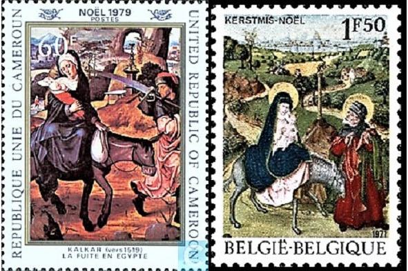 На марцы Камэруна (1979 г.) выява рэпрадукцыі карціны «Уцёкі ў Егіпет» галандзкага жывапісца Калькара (Calckerv, 1460 -1519) і марка Бэльгіі (1971 г.)