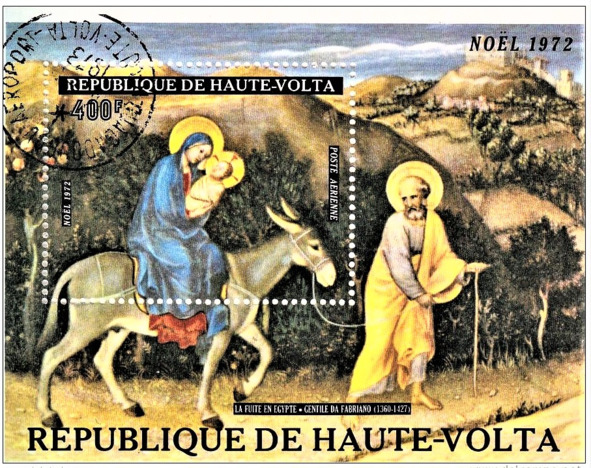 Пошта Рэспублікі Верхняя Вольта (Буркіна-Фасо) ў 1972 г. выпусьціла прыгожы блёк з выявай рэпрадукцыі карціны «Уцёкі ў Егіпет» Джэнтыле да Фабрыяна (Gentile da Fabriano)