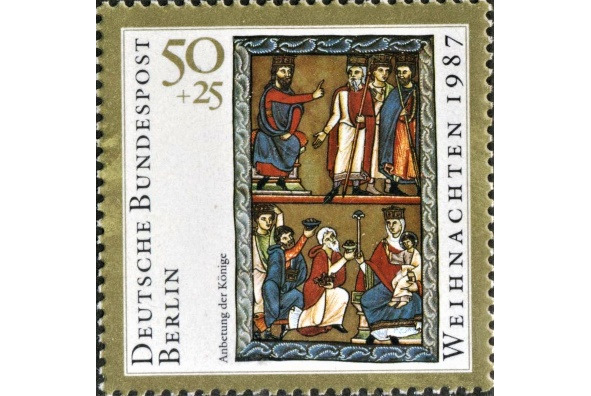 «Пакланеньне вешчуноў». У верхняй частцы мініяцюры з ангельскай Псалтыры (13 стагодзьдзе) — вешчуны ў Ірада. Марка выдадзена поштай Германіі ў 1987 г.